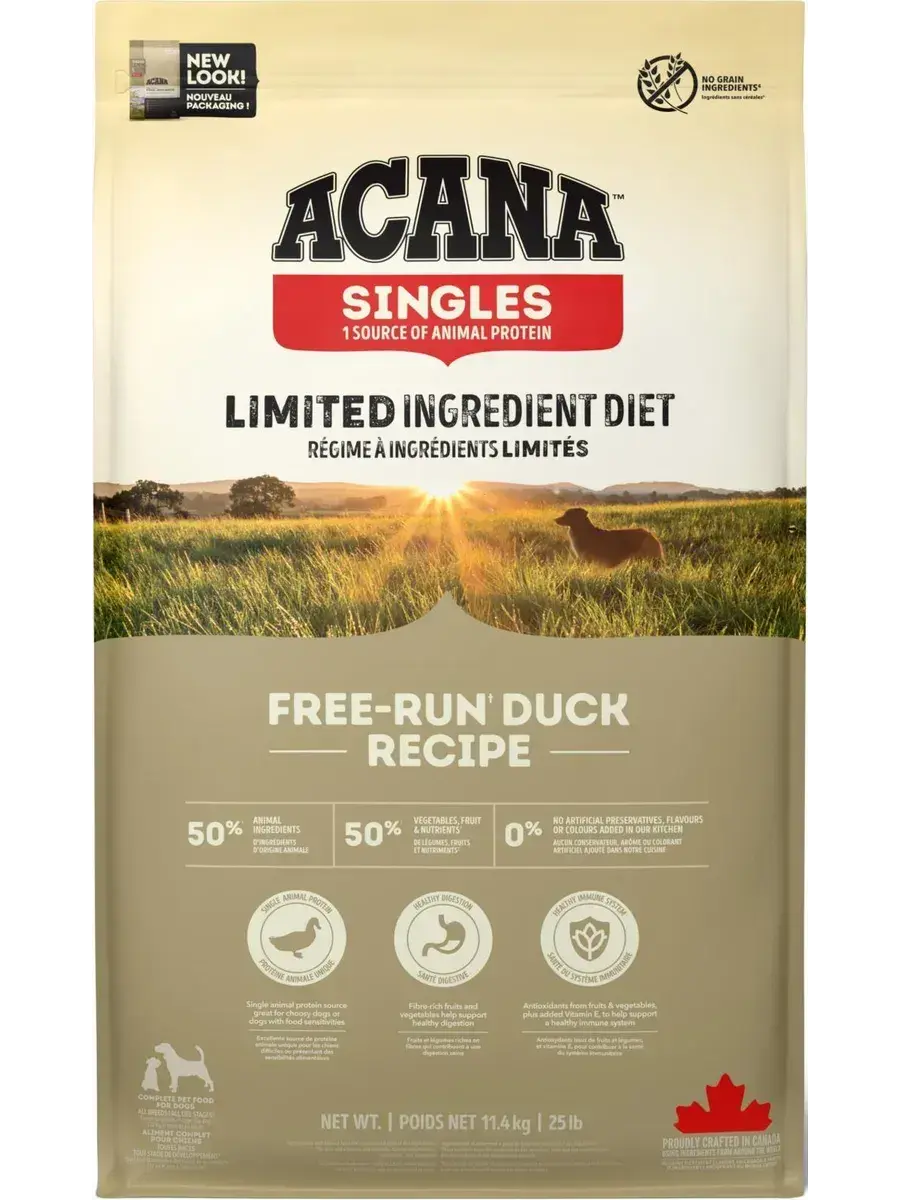 Acana Singles Free-run Duck (Утка) – полнорационный сухой корм для взрослых собак всех пород. Корм Acana Singles Free-run Duck на 50% содержит качественные утиные ингредиенты в соотношении WholePrey, а также цельные вкусные груши Бартлетт, обеспечивающие вашу собаку белком и питательными веществами, необходимыми для того, чтобы она оставалась счастливой, здоровой и сильной.