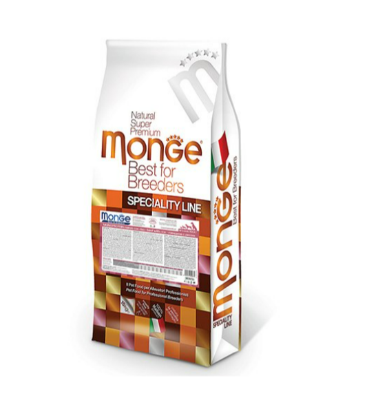 Monge (Монж) Dog PFB Specialt Monoprotein All Breeds сухой корм из мяса говядины с рисом для взрослых собак всех пород 15 кг. Сбалансированный полнорационный корм для взрослых собак всех пород, который разработан на основе одного источника белка животного происхождения – говядины. Идеально подходит для питомцев, которые обладают повышенной чувствительностью к компонентам корма или нуждаются в исключающей диете. Пребиотики М.О.S и X.O.S. помогают сохранять естественный баланс кишечной микрофлоры и способствует оптимальному усвоению питательных веществ. Содержит важнейшие антиоксиданты, такие как витамины Е и С, для поддержания иммунной системы. Говядина и рис являются источниками легкоусваиваемых белков и углеводов, поэтому данный рацион прекрасно подходит собакам с проблемами пищеварения и кожными заболеваниями. Без ГМО, искусственных красителей и ароматизаторов. Сделано в Италии.