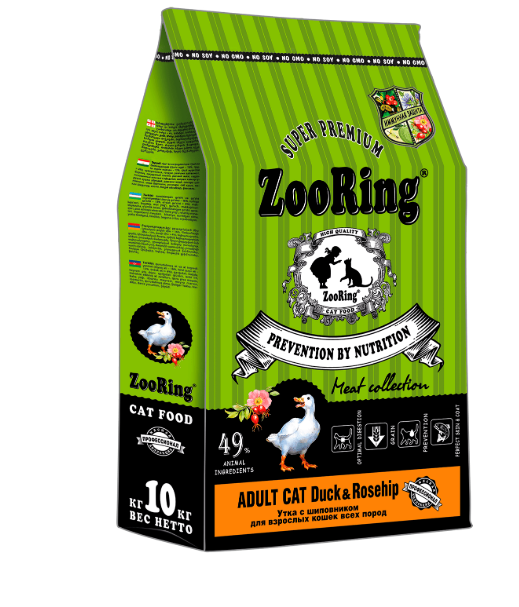 Корм ZooRing Adult Cat - это полнорационный сухой корм супер-премиум класса для взрослых кошек всех пород. Он разработан ведущими нутрициологами-диетологами и представляет собой мясную коллекцию ЭКОкормов ZooRing.