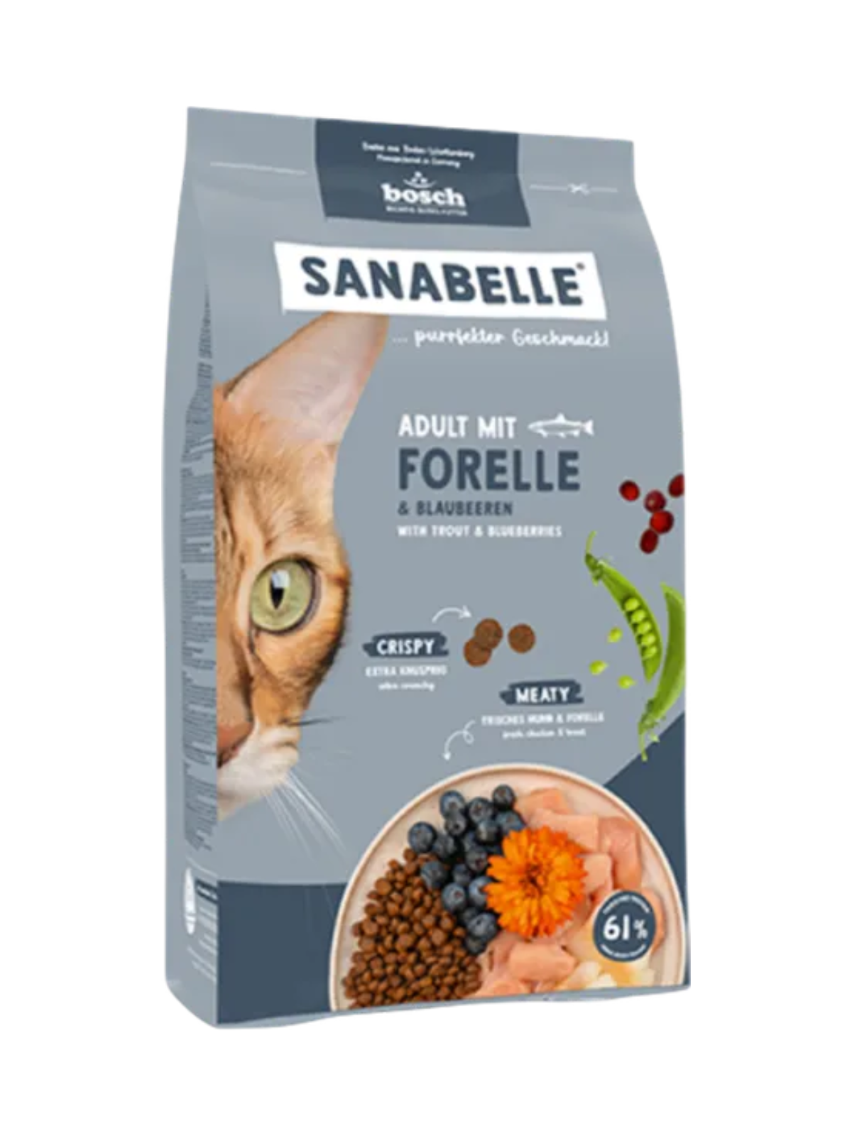 Корм для кошек Sanabelle Adult с форелью – это рацион, разработанный с учётом потребностей взрослых животных, отличается превосходным вкусом и высочайшим качеством белка.
