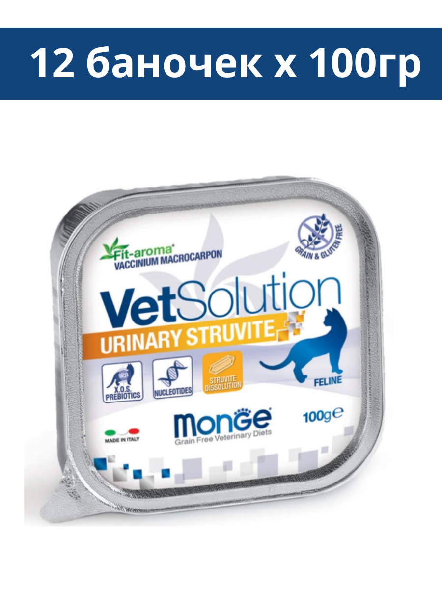 Ветеринарная диета Monge VetSolution Cat Urinary Struvite предназначена для кошек, страдающих заболеваниями мочеполовой системы и струвитным течением. Этот специализированный влажный корм помогает поддерживать здоровье ваших питомцев и способствует профилактике образования струвитных кристаллов в моче. Продукт отлично подходит для питания кошек, у которых уже диагностированы проблемы с мочевыводящей системой.