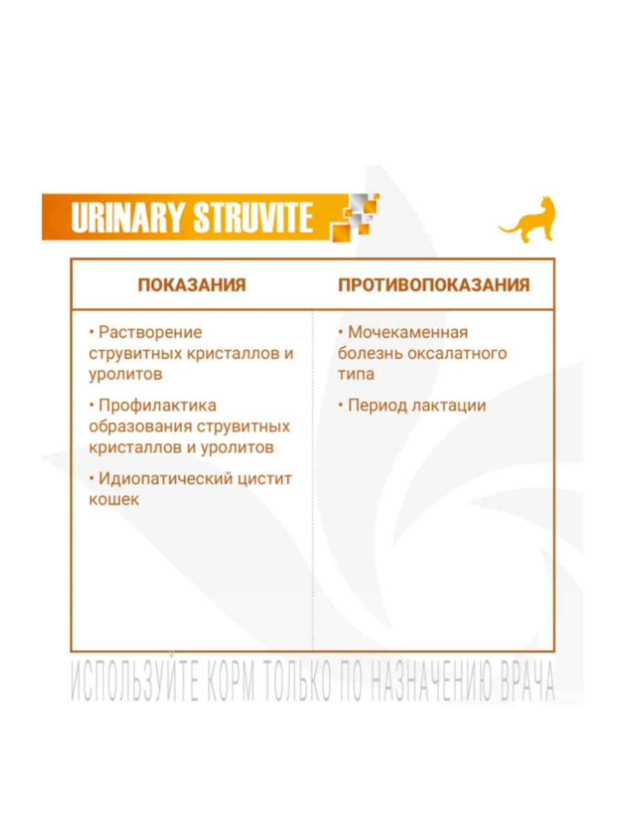 Корм легко усваивается и представлен в удобной упаковке, позволяющей сохранять свежесть и полезные свойства продукта. Убедитесь, что ваша кошка получает все необходимые питательные вещества и поддержку для ее здоровья с помощью диеты, разработанной с учетом особенностей мочевыводящей системы.